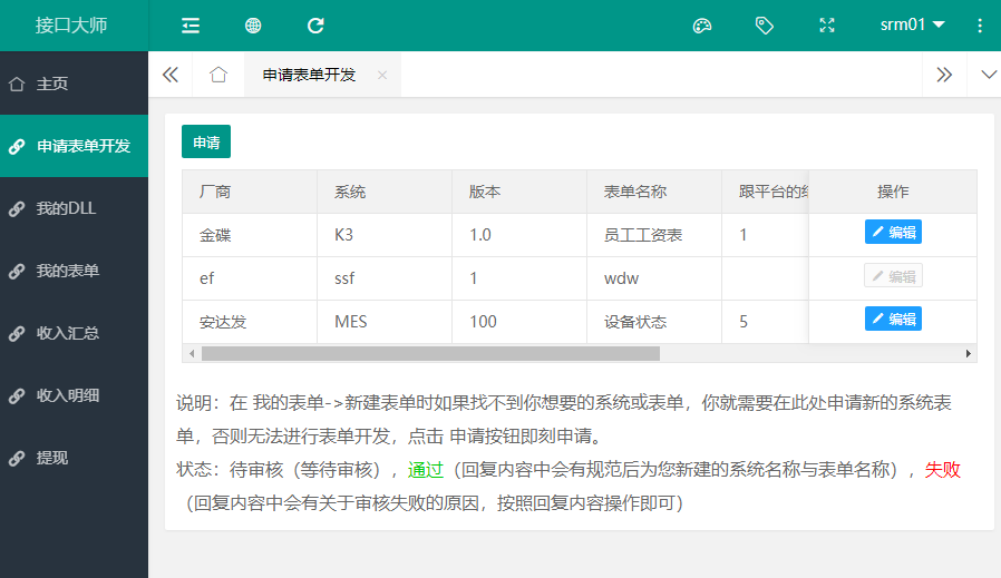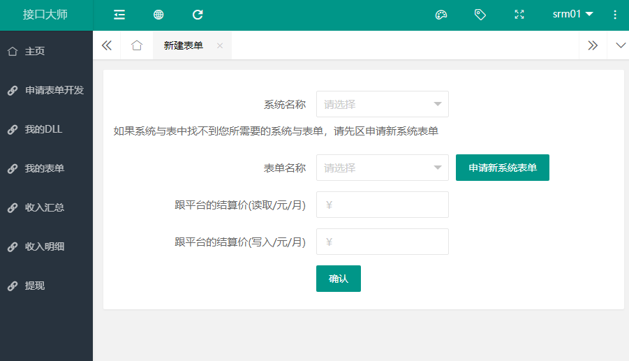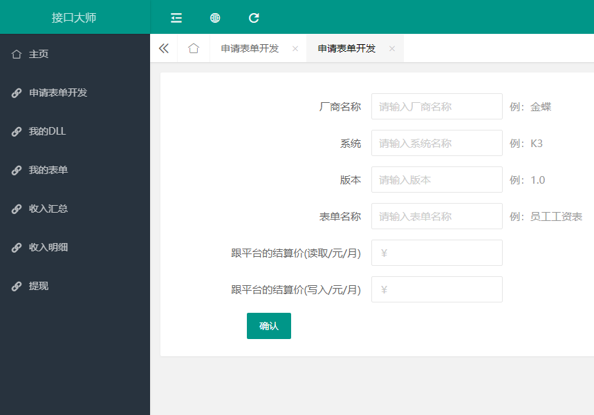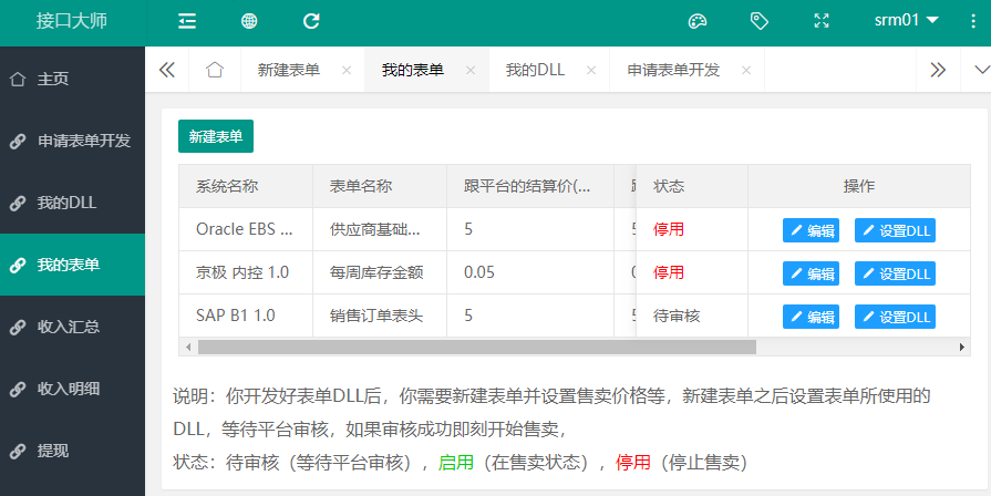 登录进入后台”——“我的表单” ——“新建表单”。并制定给平台的结算价格,关联DLL,然后提交给平台审核。